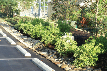 Sustainability played a big role in the design process. HPI collaborated with the design team to provide 100% improvement in the stormwater treatment over the previous site conditions. The site captures rainwater in a 25,000 gallon underground tank for use in irrigating the landscape (comprised primarily of native plants), and also utilizes new bioretention areas, which slow and reduce runoff – ultimately helping lower the temperature of runoff into the nearby Sugartree Creek. Some other items include a white roof on the Whole Foods store, over 60% of the parking is provided by covered structures and all the site lighting utilizes cut-off luminaires to reduce light pollution.