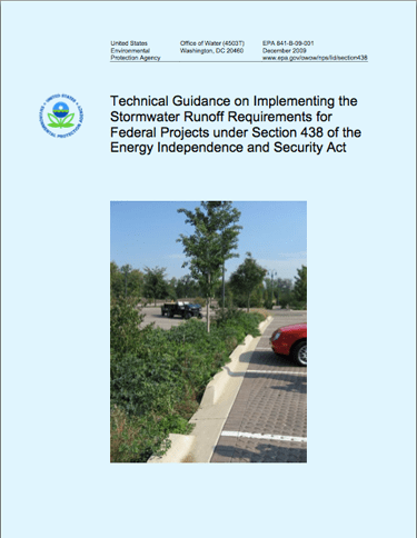 Just in case you missed it last week among all of the other pressing news stories, the EPA released a report outlining technical guidelines for implementing the stormwater runoff requirements for federal projects under Section 438 of the Energy and Independence and Security Act (EISA). In effort to afford designers maximum flexibility, the guidance provided is performance-based. The Section 438 of the EISA established the following requirements: